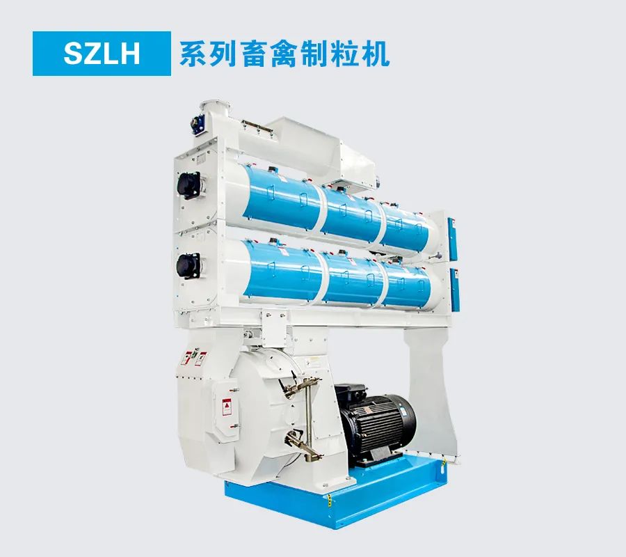SZLH系列畜禽制粒机低重心、转子中心和环流中心非重叠设计,破环流、提升生产效率。